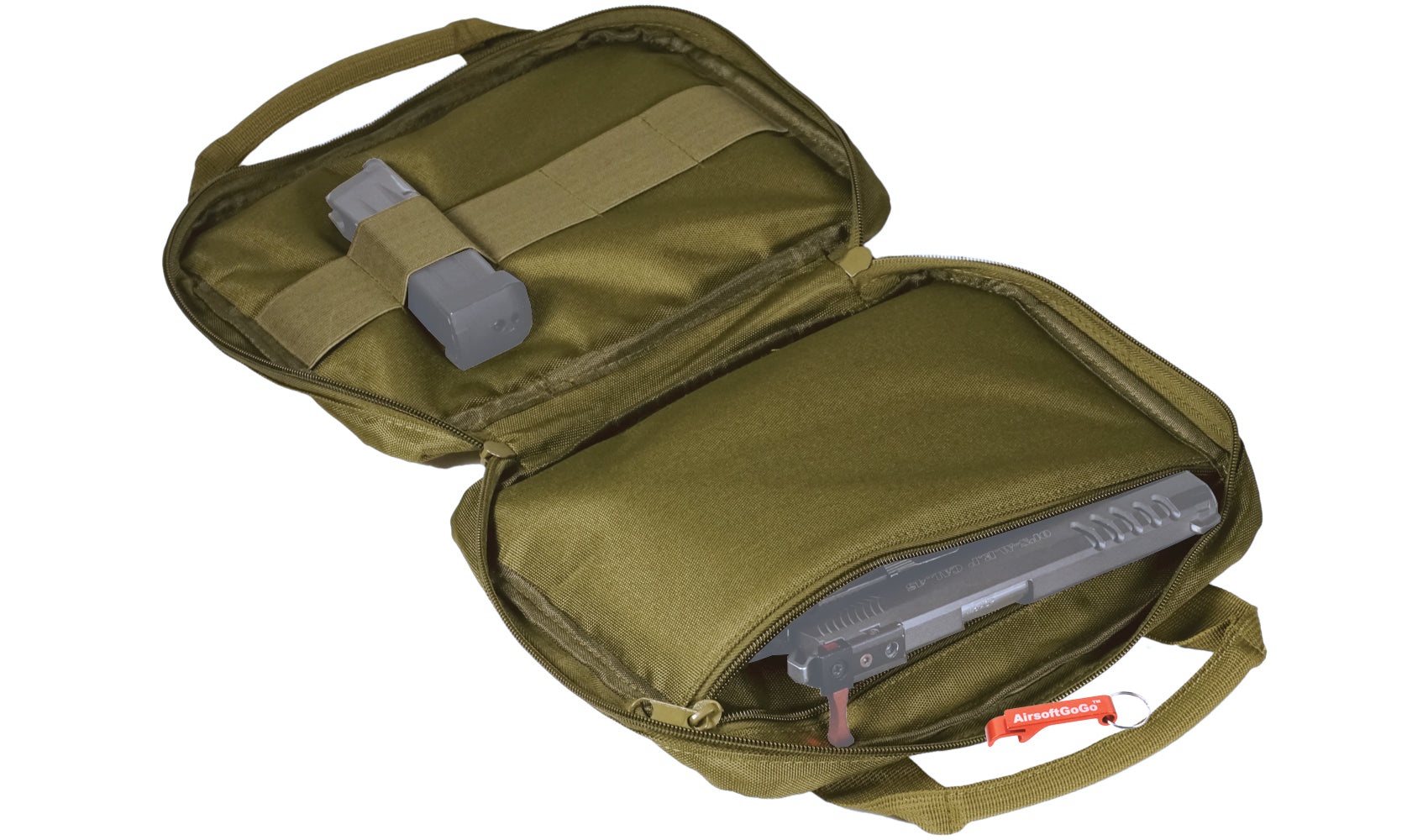 Tactical handgun bag/soft gun case with 5 magazine pockets (small bag, green color)